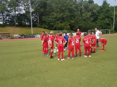Am Samstag startete die U12 ihr Trainingswochenende mit einem Auswärtsspiel beim SC Hennen in Iserlohn. Ein sehr guter Testspielgegner, da sie als D1 in der Kreisliga A Iserlohn spielen. Bis auf wenige Urlauber war der gesamte Kader mitgereist. Von Beginn an ließen die Roten den Ball schon sehr gut laufen, spielten in gefährlichen Situationen über den Torwart und nutzten die neue Größe des Platzes. Hennen konnte allerdings auch sehr gut mitspielen. Das 1:0, welches such der Halbzeitstsand war, fiel dann durch Benny nach einem super Pass von Luis. In der zweiten Hälfte wurde die Dominanz der Hammer Jungs noch größer und fast jeder Schuss aufs Tor traf. Nach vier Toren von Ensar traf Timur zum 6:0 Endergebnis. Nach dem Spiel fuhr die gesamte Mannschaft mit den Eltern erst einmal Essen, bevor die eigene Platzanlage angesteuert wurde. Nachdem die Sachen für die Übernachtung ins Vital gepackt wurde, fand die nächste Trainingseinheit statt. Bevor abends für die Spieler und Eltern Pizza bestellt wurde, stand noch ein 4 km Lauf am Kanal an. Nach einem schönen Abend und der gemeinsamen Übernachtung wurde morgens im Casino gefrühstückt. Um 10 Uhr bekamen die Jungs von unserem neuen Athletiktrainer Sven, der schon mehrere Jahre für Schalke 04 tätig war und ab jetzt auch zum Trainerteam gehört, ihre erste Einheit. Mittagessen gab es dann wieder im Casino. Bevor am Nachmittag das letzte Training Anstand schauten die Jungs sich noch die U15 und die U13 an in der unser Torwart Emirhan seine ersten Erfahrungen sammeln konnte. Das Trainerteam Matthias, Eugen, Sep und Sven waren sehr zufrieden und den Jungs, mit ihren Eltern hat es sehr gut gefallen. ms