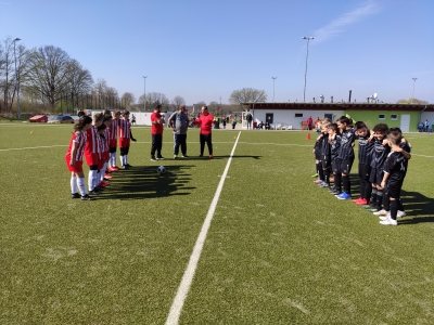 Am heutigen Sonntag war, bei herrlichem Sonnenschein, Borussia Dortmund zu Gast im Hammer Osten. Wie schon vor 2 Jahren traf man sich zu einem gemeinsamen Trainingsspiel unter Wettkampfbedingungen. Gespielt wurde auf 2 Plätzen gleichzeitig. Auf dem einen wurde ein 4+1 und auf dem Anderen ein 6+1 gespielt. Insgesamt wurden 5 Halbzeiten a 15 Minuten gespielt. Alle Kinder hatten riesig Spaß und es fielen reichlich Tore auf beiden Seiten. Am Ende bekamen unsere Jungs noch Gastgeschenke vom BVB und alle konnten zufrieden den Heimweg antreten….ms